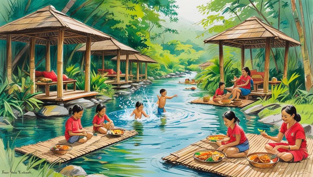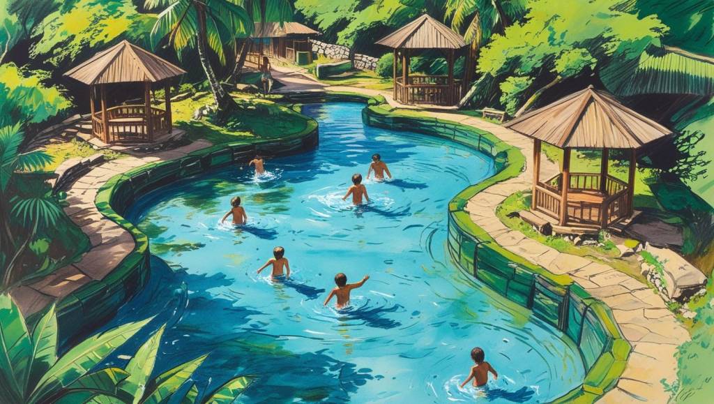 Airnya yang bening kebiruan memantulkan cahaya matahari di antara bayangan pepohonan yang rindang, menciptakan suasana yang damai dan menenangkan. Di sekitar umbul, pengunjung bisa bersantai di gazebo-gazebo bambu, menjelajahi sungai kecil, atau sekadar merendam kaki sambil menikmati gemericik air yang mengalir abadi.